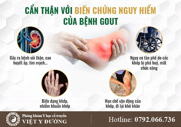 Nếu bệnh gout không được phát hiện và điều trị kịp thời, người bệnh có thể đối mặt với nhiều biến chứng nguy hiểm, ảnh hưởng nghiêm trọng đến sức khỏe: