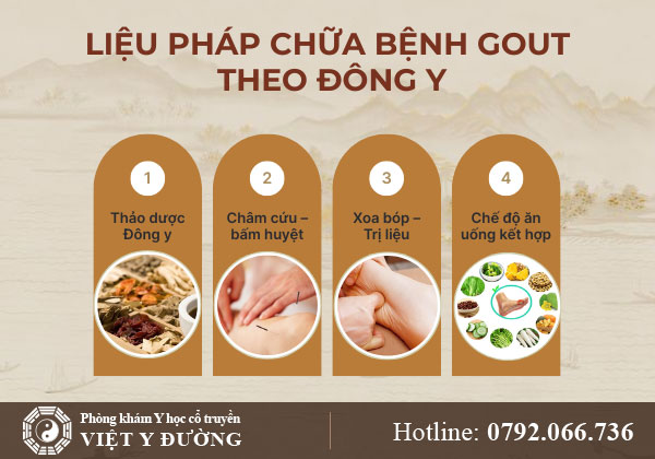 Sử dụng các bài thuốc có tác dụng thanh nhiệt, giải độc, lợi niệu, khu phong thấp. Từ đó giảm sưng đau và hỗ trợ đào thải acid uric.