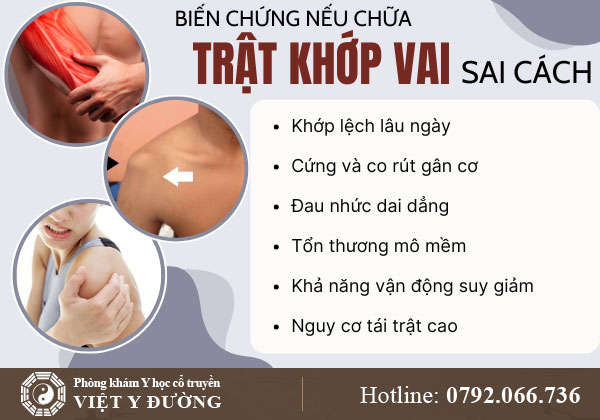 Khớp lệch lâu ngày: Nắn không đúng kỹ thuật khiến khớp vai không về vị trí chuẩn, dễ tái trật.