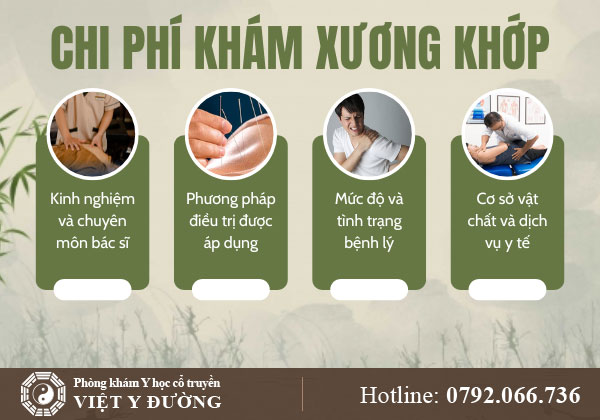 Tại Phòng khám Y học cổ truyền Việt Y Đường, chi phí khám xương khớp phụ thuộc vào: