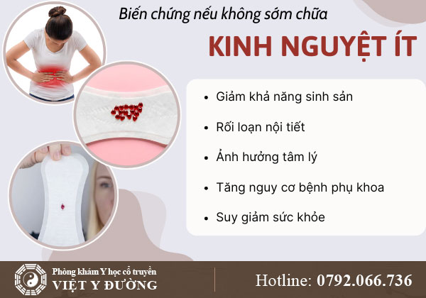 Vì vậy, khi kinh nguyệt ít kéo dài, cần thăm khám và điều hòa khí huyết sớm để tránh biến chứng.