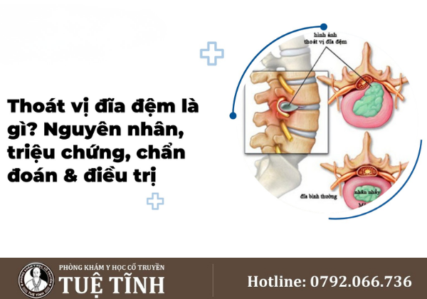 Thoát vị đĩa đệm xảy ra khi nhân nhầy đĩa đệm thoát ra ngoài do bao xơ bị rách, chèn ép rễ thần kinh. Nguyên nhân chính bao gồm thoái hóa tự nhiên (tuổi tác), sai tư thế, vận động quá sức, hoặc chấn thương cột sống. Dấu hiệu đặc trưng là đau nhức lan tỏa (lưng/cổ), tê bì tay chân, yếu cơ và giảm khả năng vận động.