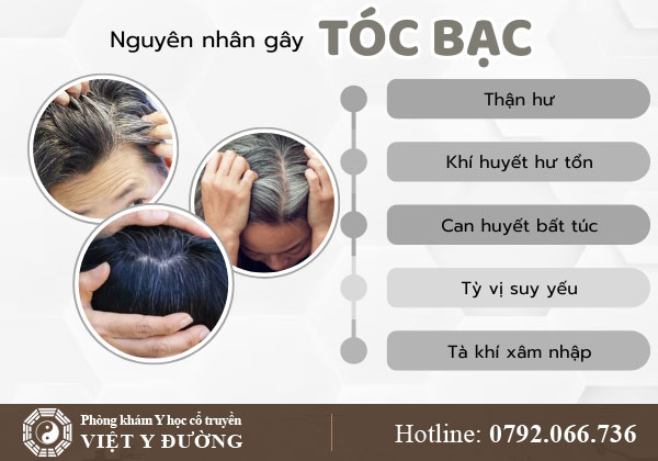 ↬ Tỳ vị suy yếu: Ăn uống kém, tỳ vị vận hóa kém, chất dinh dưỡng không đến được tóc, gây bạc sớm.
