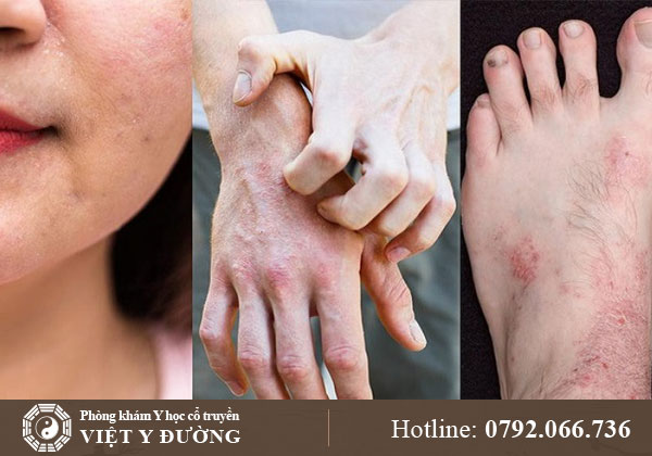 ↪ Phong nhiệt uất kết: Tà khí phong nhiệt xâm nhập cơ thể, gây bùng phát ngứa và viêm da.
